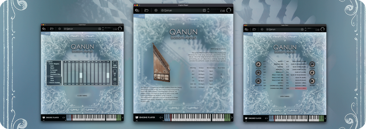 Die Library für den Engine Player bietet eine moderne klare Oberfläche und einen direkten Workflow. Die Artikulationen sind in „performed“ und „playable“ unterteilt und werden durch integrierte Microtunings für authentische Skalen und Klangfarben ergänzt. Kurz gesagt: ein ausdrucksstarkes, sofort spielbares Qanun mit Fokus auf Natürlichkeit und Flexibilität.