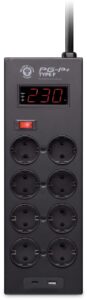 Mit seinem robusten Metallgehäuse in edlem schwarz macht der PG-P Plus Type F von Black Lion Audio in jedem Studio-Umfeld eine hervorragende Figur. Gleichzeitig ist er perfekt gerüstet für den rauen Einsatz auf Tour: Die acht Schuko-Steckdosen befinden sich wie die USB-Anschlüsse, der Powerschalter und die Betriebszustands-Anzeigen leicht zugänglich auf der Oberseite. Die versenkten Gummifüße gewährleisten stabilen Halt, gleichzeitig bietet der PG-P Plus Type F komfortable Montagemöglichkeiten über Klettbänder oder Verschraubungen. Das Road-taugliche Anschlusskabel ist komfortable