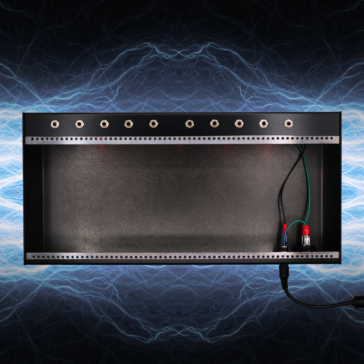 As the name implies, the case is made entirely of steel, with mounting holes tapped directly into the steel frame. This ensures that modules stay put, and the weight of the case keeps it in place while in use, despite its compact size. A pair of passive mults installed on the bottom of the case aids in patching, and saves HP in a small system. And while some skiffs are particularly shallow, Case of Steel offers over 2” of depth for modules, housing all but the deepest Eurorack designs for unmatched flexibility. Case of Steel also features an integrated power supply. A power switch on the back of the case turns on the system, and power is delivered via a real busboard installed under the row of mults – no flying bus cables here. Despite the case’s compact size, the power specs are no joke: two zones of +12V offering 850mA each, plus 750mA of -12V and 1A of +5V. In a 64 HP system, it’ll be difficult to reach those limits. Case of Steel has a built-in power switch, and ships with a power brick, too. For the production of Case of Steel, Noise Engineering worked with a metal fabricator near their headquarters, showing off the awesome capabilities of the Los Angeles maker community.